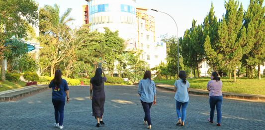 berjalan ke pegunungan menuju sebuah kota...